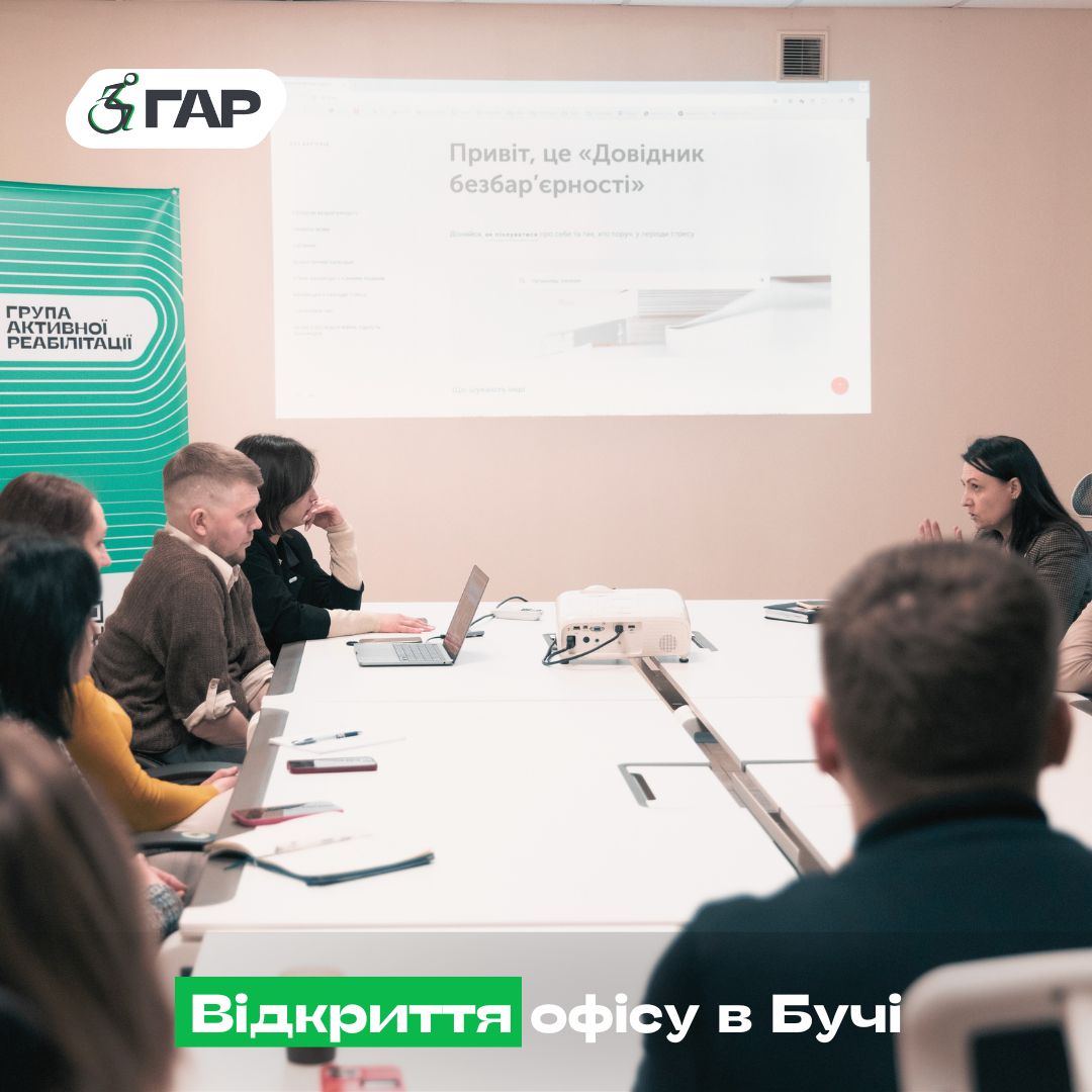 (Українська) Відкриття офісу Громадської організації «Група активної реабілітації» в Бучі — важливий крок, що дозволить систематично проводити для людей з ураженням спинного мозку (УСМ) різноманітні заходи, які сприятимуть підвищенню обізнаності про УСМ, розвитку навичок самообслуговування та набуття інших, що дозволять повноцінно жити.