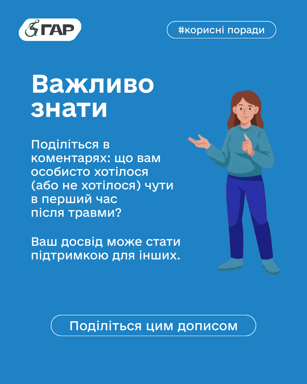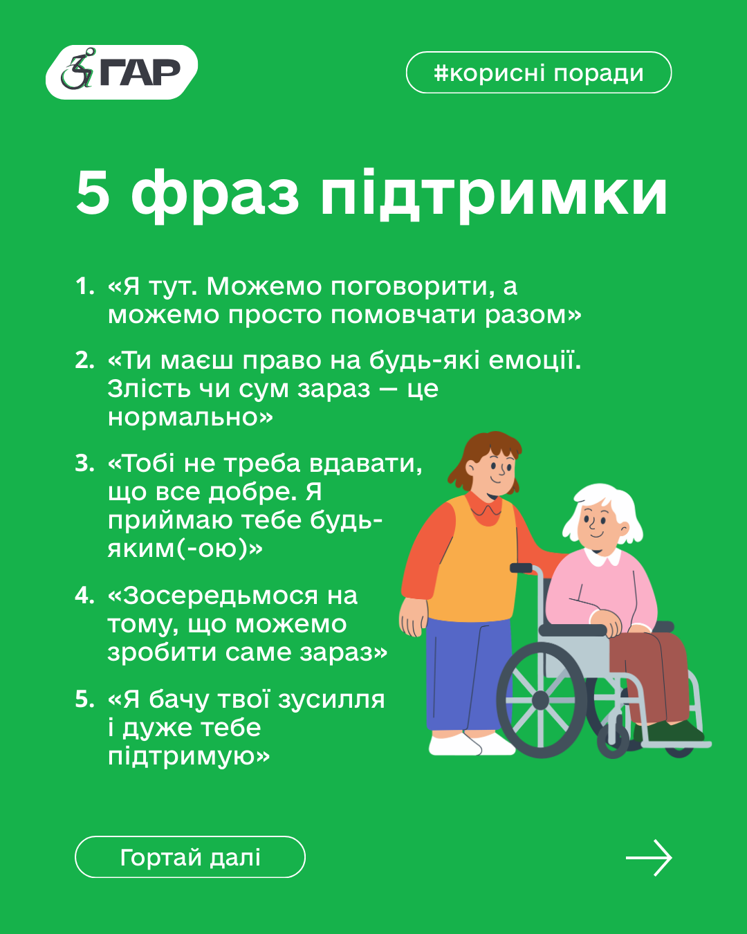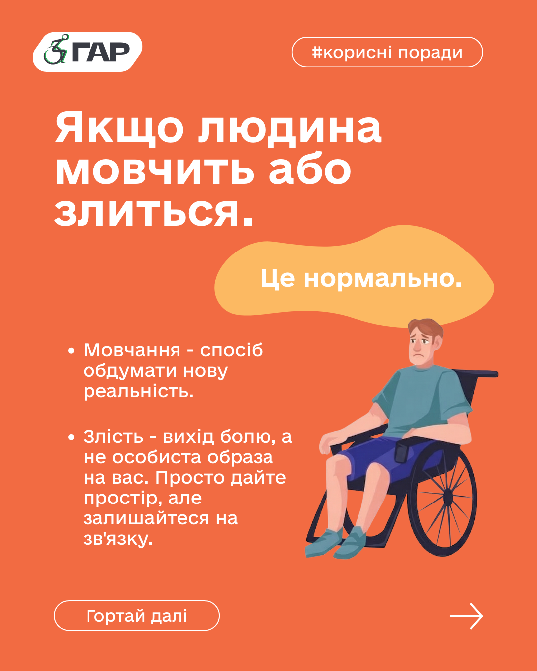 Крісло колісне чи лікарняне ліжко не змінюють того, що перед вами та сама особистість, яка потребує прийняття, а не жалю.