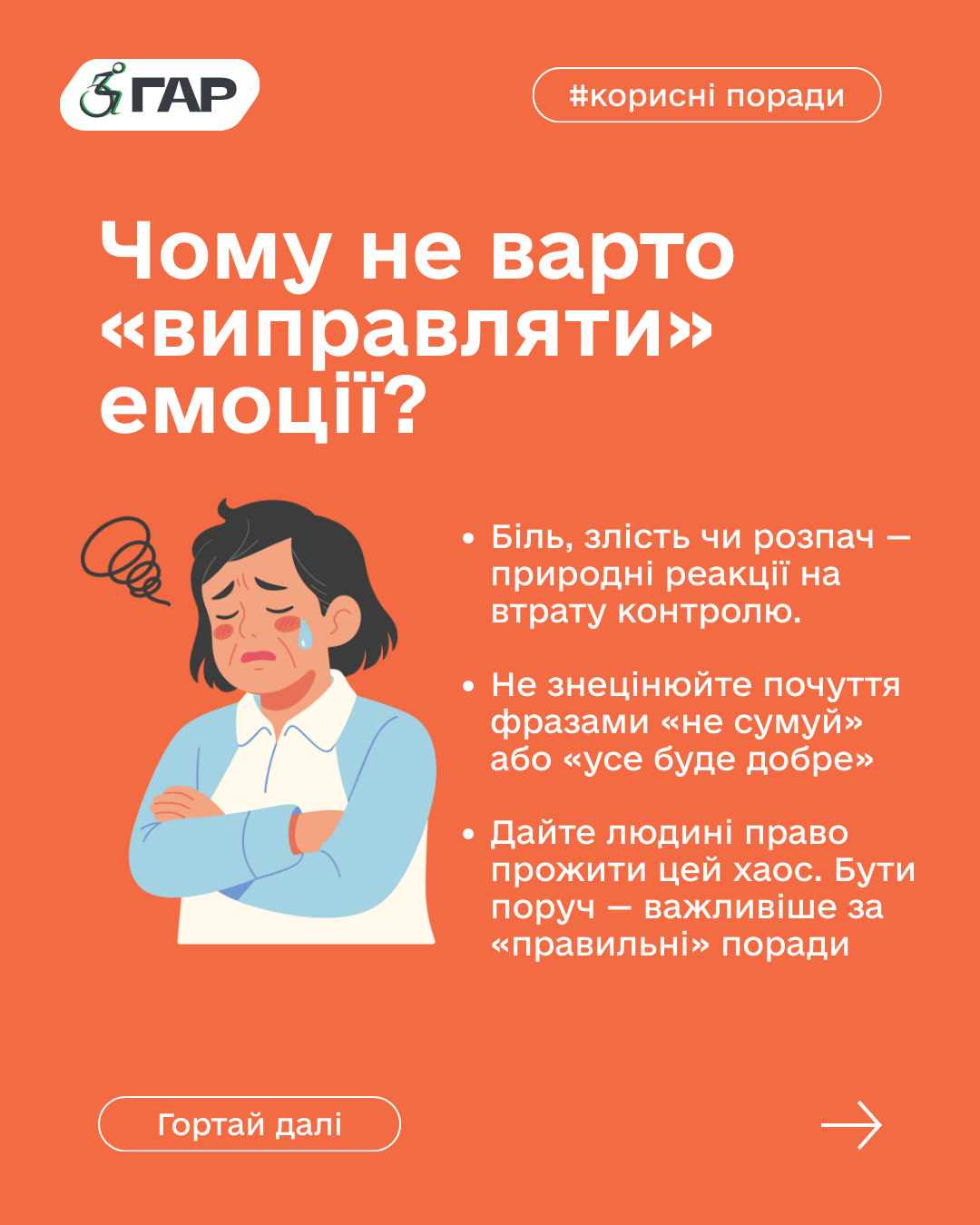 Це про дозвіл бути слабким, про визнання болю й повагу до права людини проживати цей досвід по-своєму.