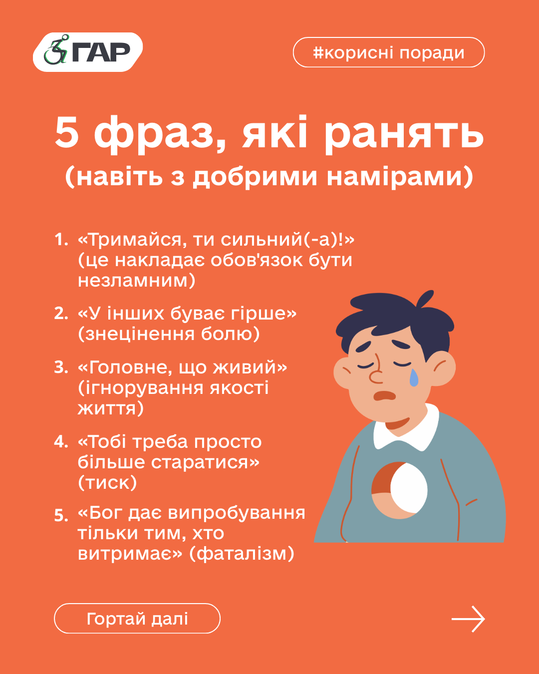 Коли близька людина зазнає травми, ми часто ніяковіємо в розмові з нею.